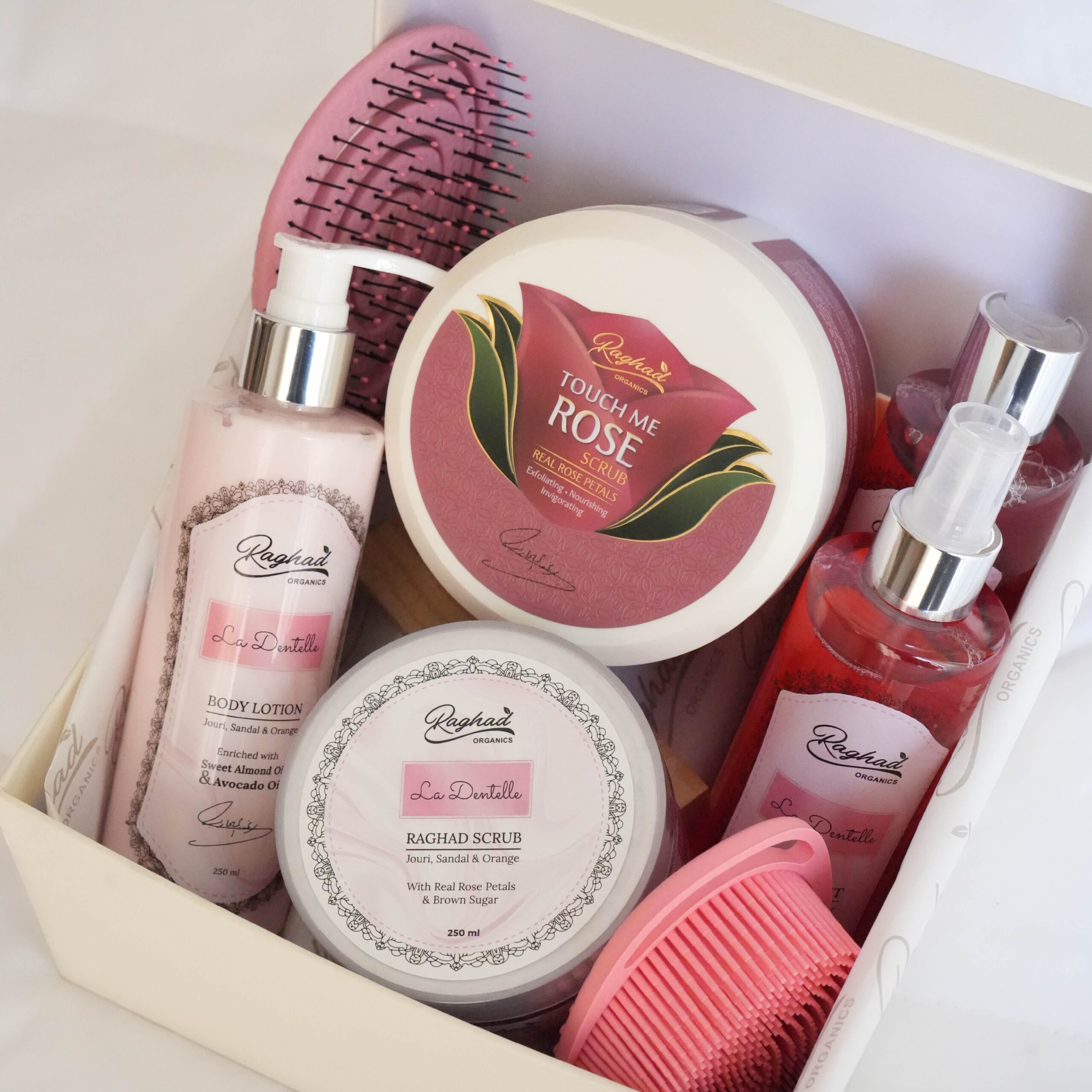 كل منتجات رغد أورجانكس باللون الزهري داخل بوكس واحد! لكل بنت بتحب النعومة والأنوثة. كل قطعة داخل البوكس مختارة بعناية لتمنحك إحساسًا متكاملًا بالنظافة، الترطيب، والعطر الناعم.