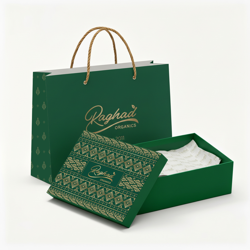 A unique green gift box inspired by natural tones. Includes a matching bag, greeting card, and coordinated inner wrapping for a complete gift experience.